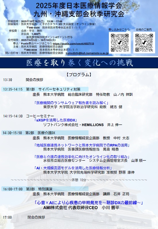 2025年度日本医療情報学会 九州・沖縄支部会秋季研究会